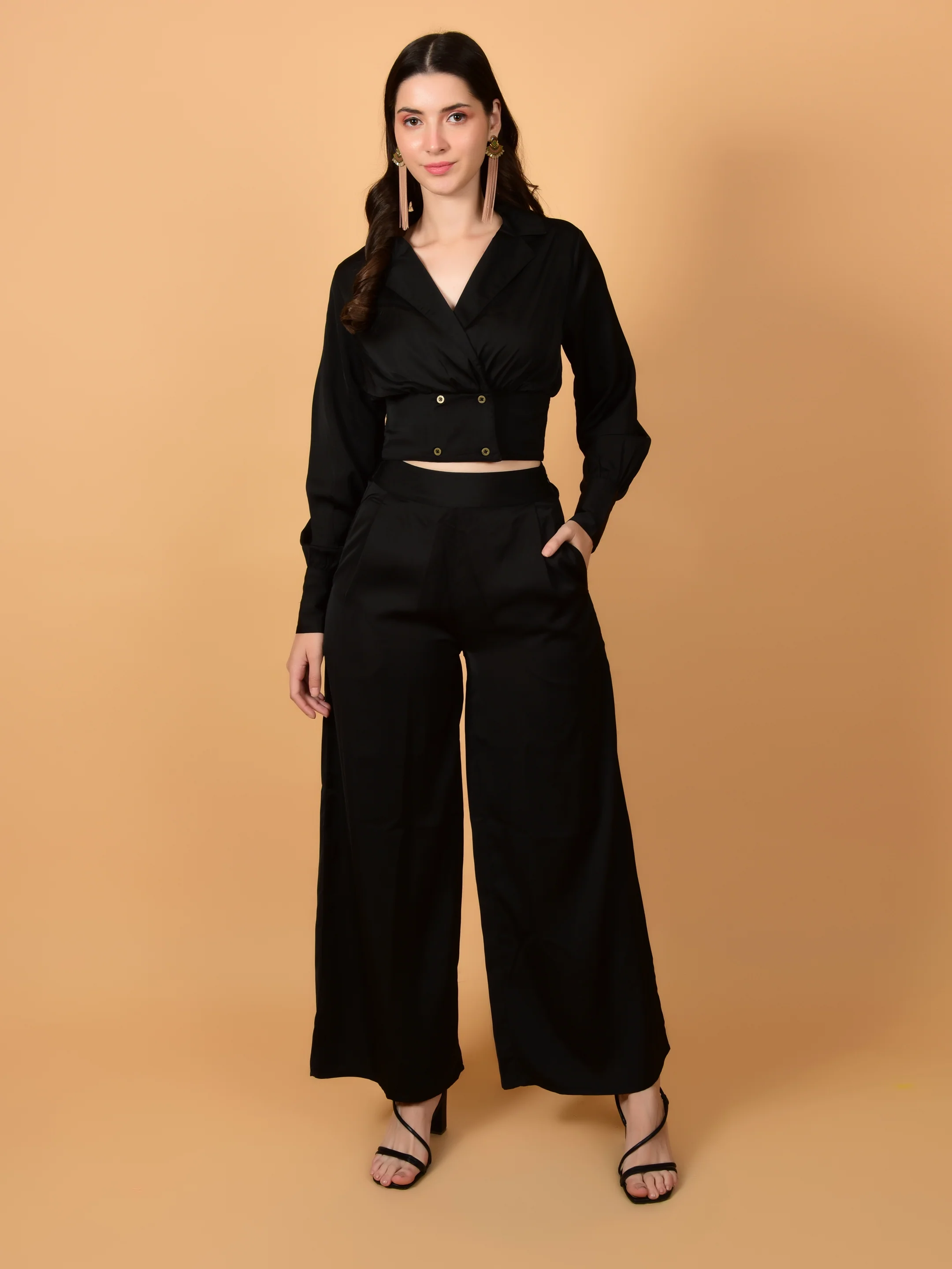 Flawless Women Black Satin Co-Ord Set | DIXI