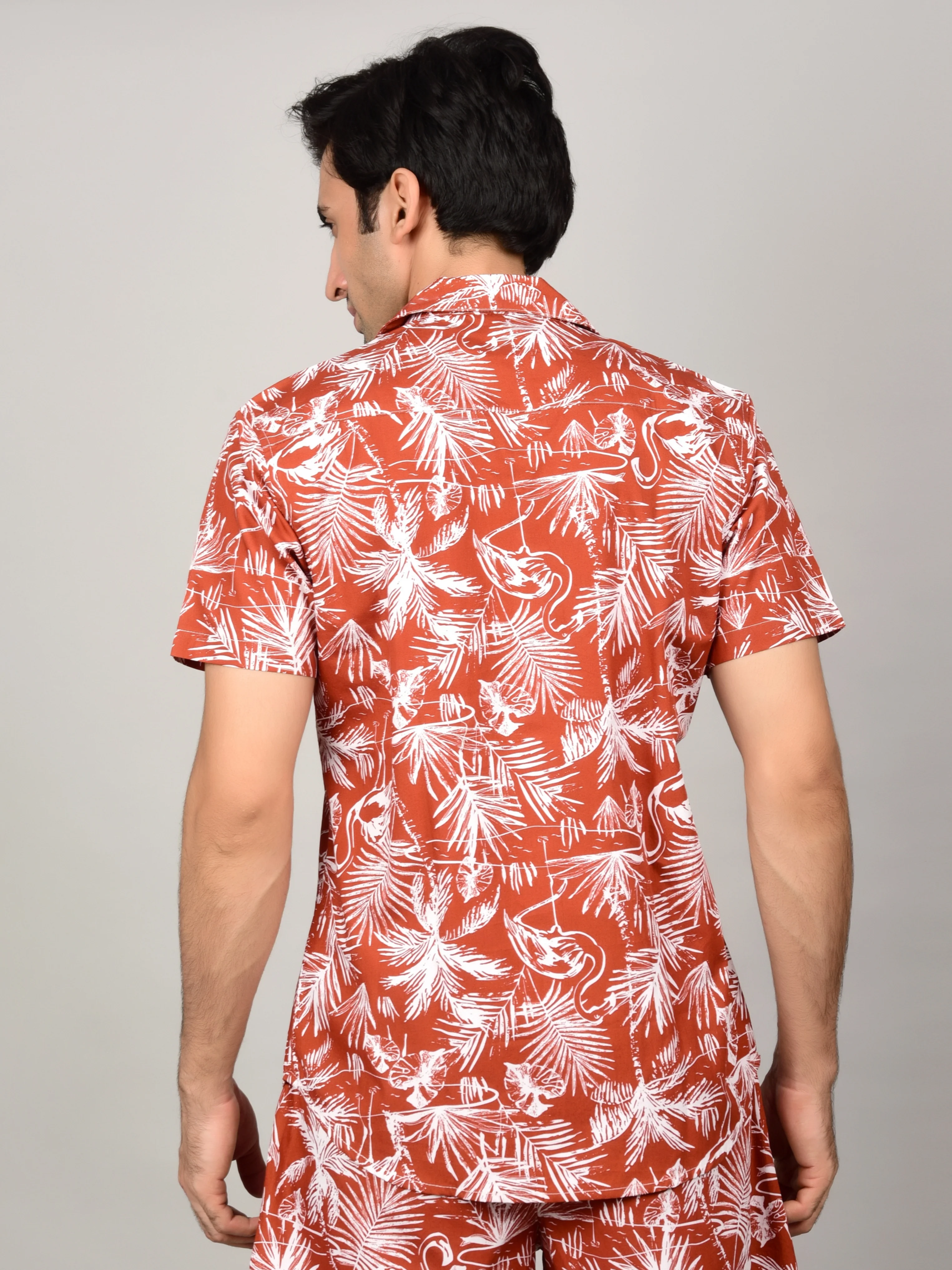 Look sharp and feel comfortable with this men's crimson red shirt. This eye-catching top boasts a unique floral or leaf-inspired print that adds a touch of personality to any outfit. Made from breathable cotton, this shirt is perfect for all-day wear, keeping you cool and comfortable during work, casual outings, or even a night out.