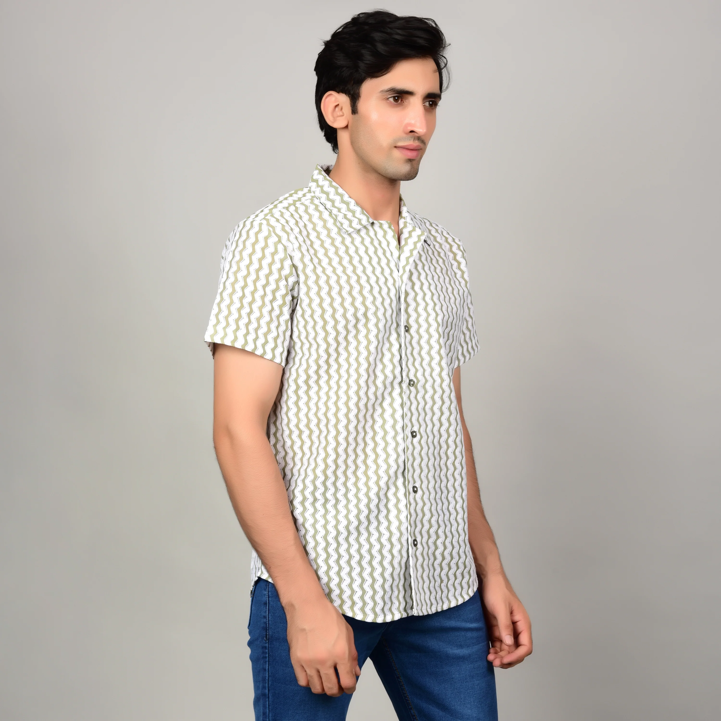 Upgrade your wardrobe with this versatile men's casual shirt in a stylish sage green and white color combination. Crafted from a comfortable and breathable poly cotton fabric, this textured shirt offers a touch of sophistication while maintaining a relaxed feel. The classic fit flatters a variety of body types, ensuring a comfortable wear all day long.