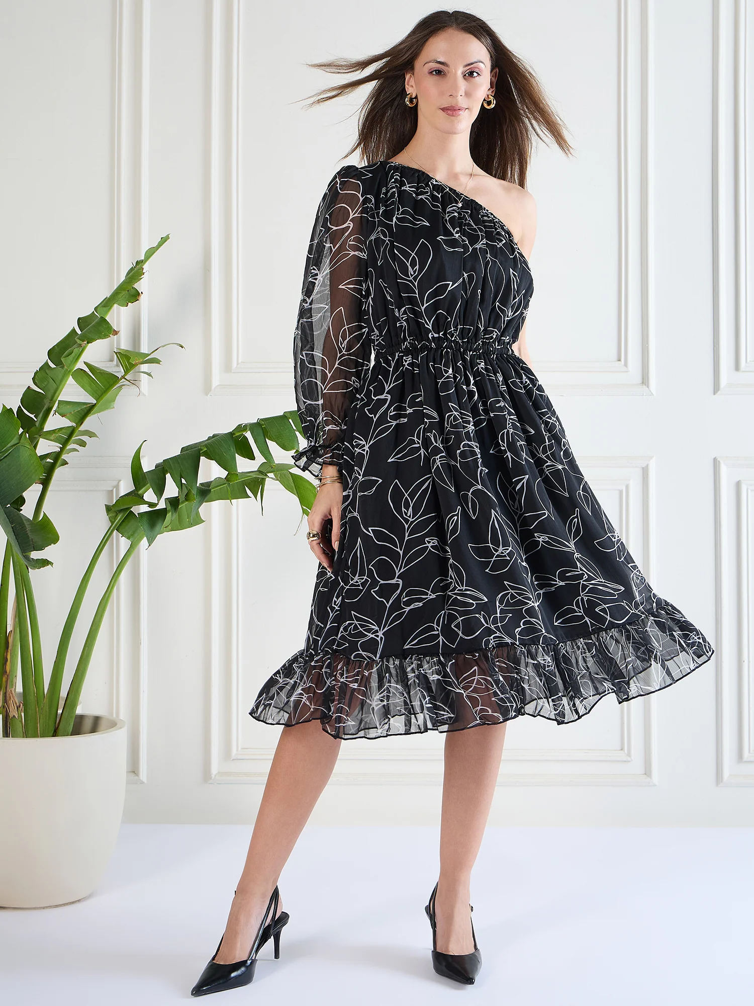 The length of the dress can vary, from mini to midi, and it can be made from a range of fabrics, including cotton, silk, chiffon, or lace. Some one shoulder dresses also have additional features like ruffles, asymmetrical hemlines, or cutouts.